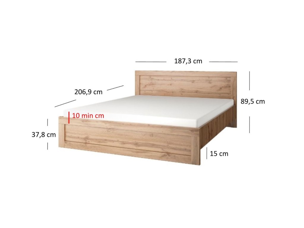 - Manželská postel 180 (ŠxHxV): 187,3 x 206,9 x 89,5 cm