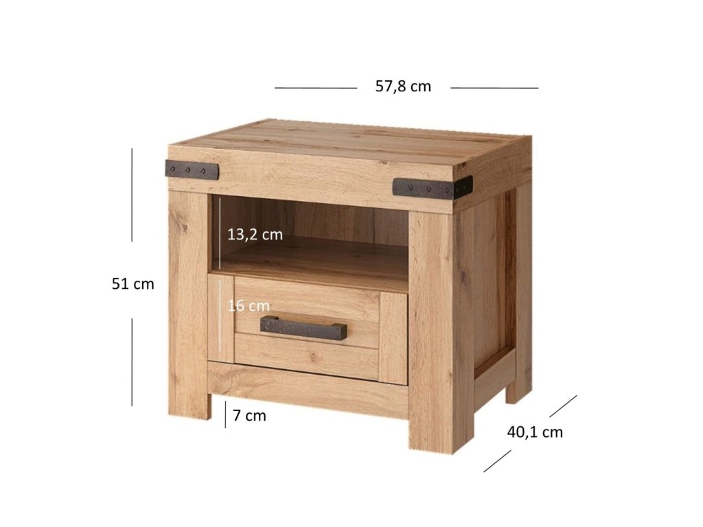 - Noční stolek 1 ks (ŠxHxV): 57,8 x 40,1 x 51 cm