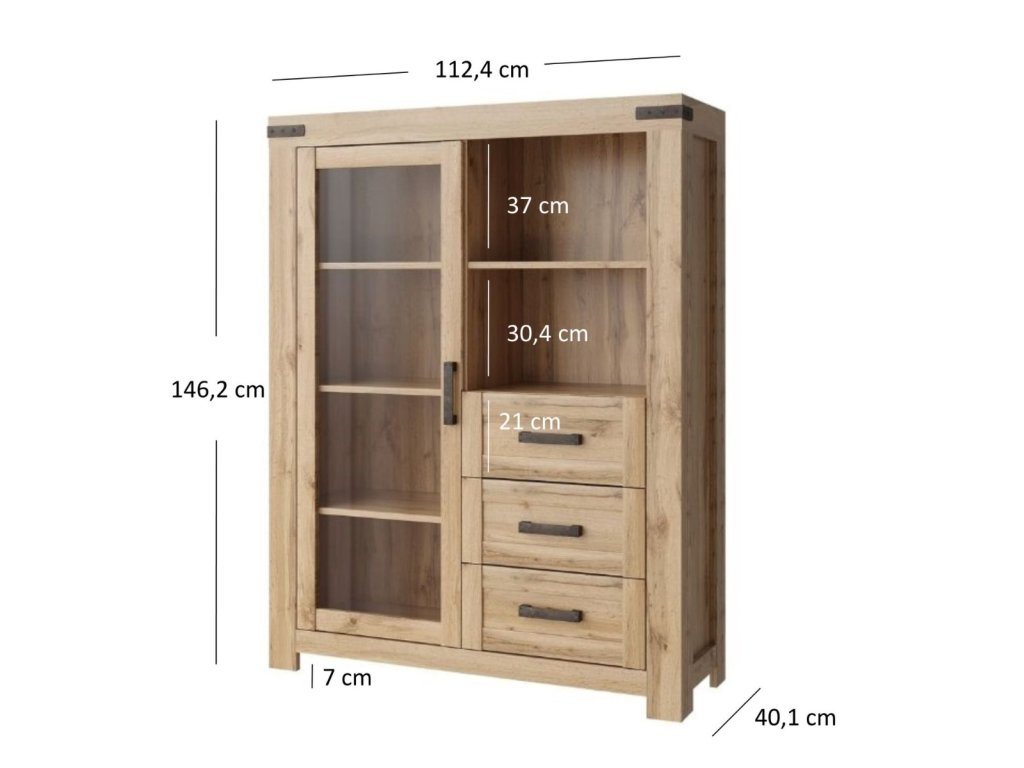 - Široká vitrína (ŠxHxV): 112,4 x 40,1 x 146,2 cm