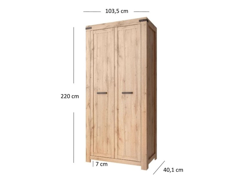 Dvoudveřová šatní skříň MARIETTA v moderním designu je praktickým doplňkem do Vaší ložnice či předsíně. Nabízí úložný prostor v podobě šatní tyče a police.