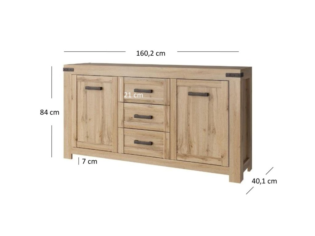 - Rozměry: (ŠxHxV): 160,2 x 40,1 x 84 cm