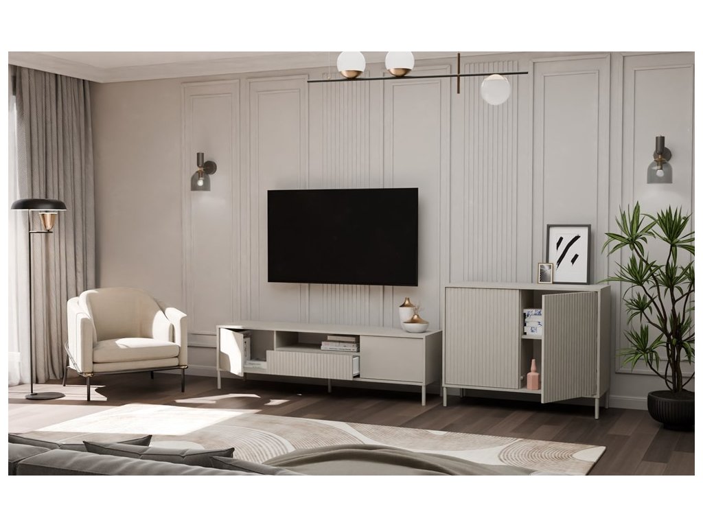 KAMARO komoda 2D slim je kombinací estetiky a funkčnosti, která se perfektně hodí do obývacího pokoje, pokoje pro hosty, ložnice nebo kanceláře. Díky drážkovaným předním částem (připomínajícím lamely) získává nábytek moderní a originální vzhled, který dokonale ladí se současnými interiéry. Moderní systém TIP-ON umožňuje pohodlné používání bez úchytek – stačí jemně stlačit dvířka a skříňka se otevře. Komoda nabízí velký úložný prostor a zároveň si zachovává minimalistický a elegantní charakter, který se hodí do mnoha aranžmá. Kombinace módního odstínu s moderním designem vytváří kus nábytku, který dodá vašemu interiéru jemnou eleganci. Díky neutrálním barvám se snadno hodí do různých stylů, od loftu až po skandinávsky.