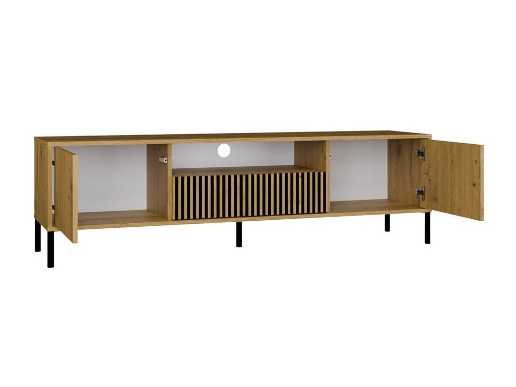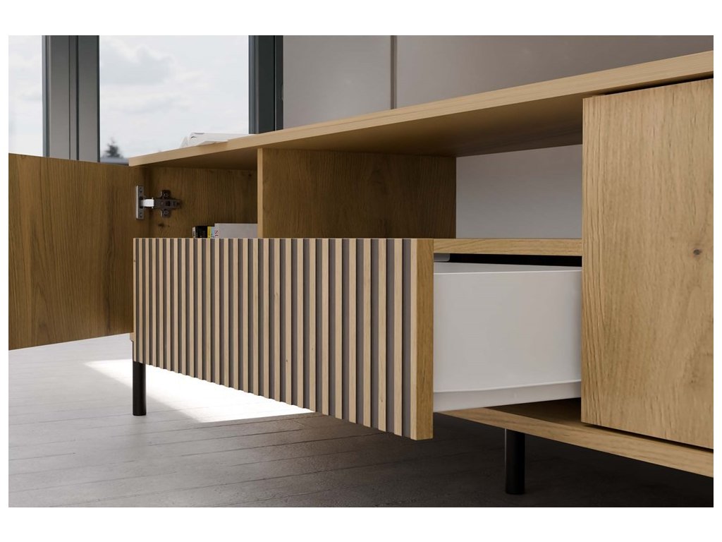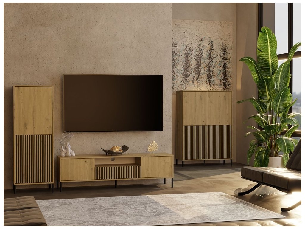 KAMARO TV stolek je kombinací estetiky a funkčnosti, který se perfektně hodí do obývacího pokoje v jakémkoli stylu. Díky drážkovaným předním částem (připomínajícím lamely) získává nábytek moderní a originální vzhled, který dokonale ladí se současnými interiéry. Moderní systém TIP-ON umožňuje pohodlné používání bez úchytek – stačí jemně stlačit dvířka a skříňka se otevře. TV skříňka nabízí velký úložný prostor a zároveň si zachovává minimalistický a elegantní charakter, který se hodí do mnoha aranžmá. Kombinace módního odstínu s moderním designem vytváří kus nábytku, který dodá vašemu interiéru jemnou eleganci.