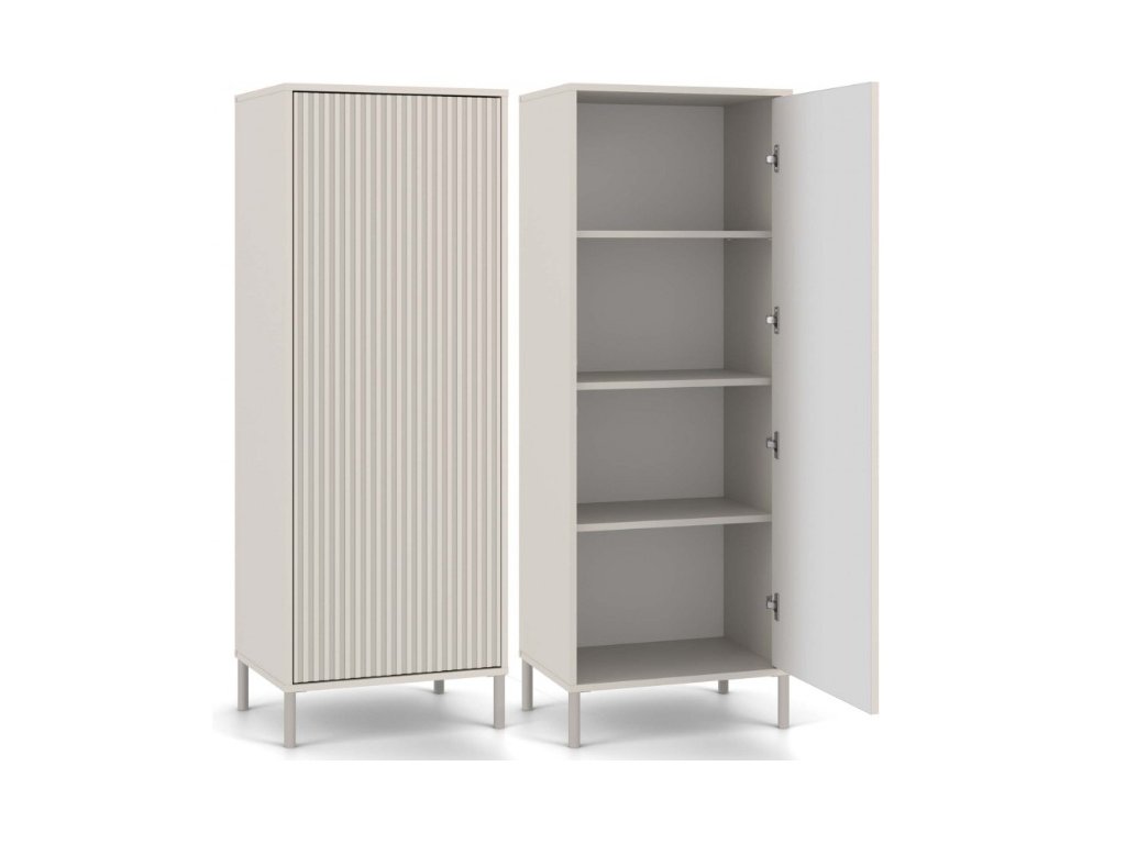 KAMARO úzká skříňka 1DD je kombinací estetiky a funkčnosti, který se perfektně hodí do obývacího pokoje v jakémkoli stylu. Díky drážkovaným předním částem (připomínajícím lamely) získává nábytek moderní a originální vzhled, který dokonale ladí se současnými interiéry. Moderní systém TIP-ON umožňuje pohodlné používání bez úchytek – stačí jemně stlačit dvířka a skříňka se otevře. Úzká skříňka nabízí velký úložný prostor a zároveň si zachovává minimalistický a elegantní charakter, který se hodí do mnoha aranžmá. Kombinace módního odstínu s moderním designem vytváří kus nábytku, který dodá vašemu interiéru jemnou eleganci a kompaktní rozměry jí umožňují snadno se přizpůsobit i menším prostorům. Ideální pro knihy, dekorace nebo nádobí - dodá vašemu interiéru styl a pořádek.