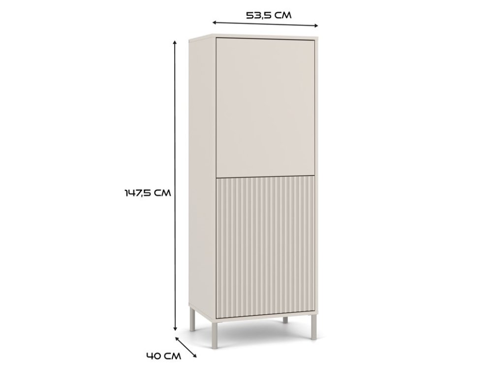 KAMARO úzká skříňka 2DD je kombinací estetiky a funkčnosti, která se perfektně hodí do obývacího pokoje v jakémkoli stylu. Díky drážkovaným předním částem (připomínajícím lamely) získává nábytek moderní a originální vzhled, který dokonale ladí se současnými interiéry. Moderní systém TIP-ON umožňuje pohodlné používání bez úchytek – stačí jemně stlačit dvířka a skříňka se otevře. Úzká skříňka nabízí velký úložný prostor a zároveň si zachovává minimalistický a elegantní charakter, který se hodí do mnoha aranžmá. Kombinace módního odstínu s moderním designem vytváří kus nábytku, který dodá vašemu interiéru jemnou eleganci, styl a pořádek.