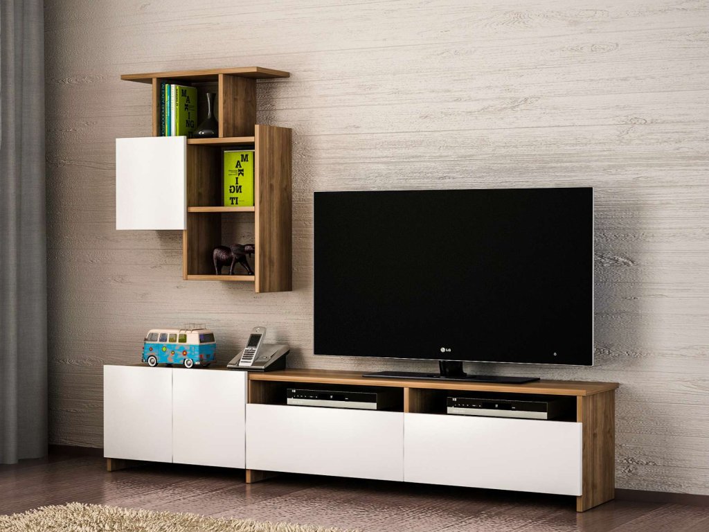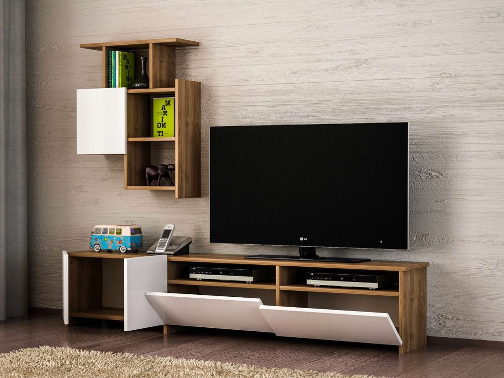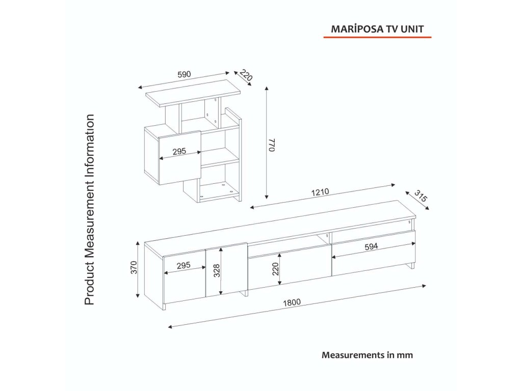 - Rozměry: TV stolek (180 x 31.5 x 37 cm) a nástěnný modul (59 x 22 x 77 cm), poskytující elegantní a praktické řešení pro uspořádání vašich multimediálních zařízení a dekorací.