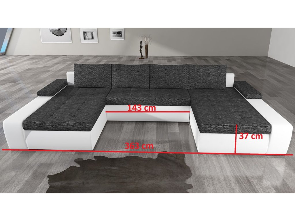 Exkluzivní sedačka Marína za lidovou cenu. Moderní design, velká sedací plocha a variabilita jsou základní charakteristiky této sedačky. Samozřejmostí je také funkce rozkladu, při které se vytvoří účelná spací plocha o rozměru 297 x 122 cm. Sedák je tvořen vlnovcovou pružinou. Čalouněná je kombinací látky Berlin 01 a eko-kůže Soft 011 a to ve 2 kontrastních barvách světle šedá a černá. Rozměr sedačky je (š/h/v) 363/200/88cm. Hloubka sedu je 53 cm, výška sedu je 37 cm. Rozměry sedačky si můžete najít také v obrázkové galerii produktu. V nabídce naleznete i další barevné provedení.Doplňkové parametry
