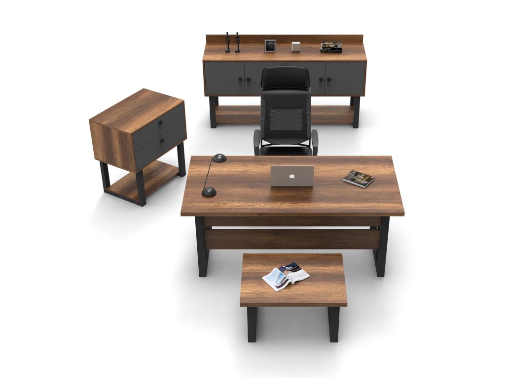 | Sestava obsahuje: | psací stůl 180x90x73cm, konferenční stolek 80x60x43cm, malá komoda 80x52x85cm, konzola 180x54x93cm |