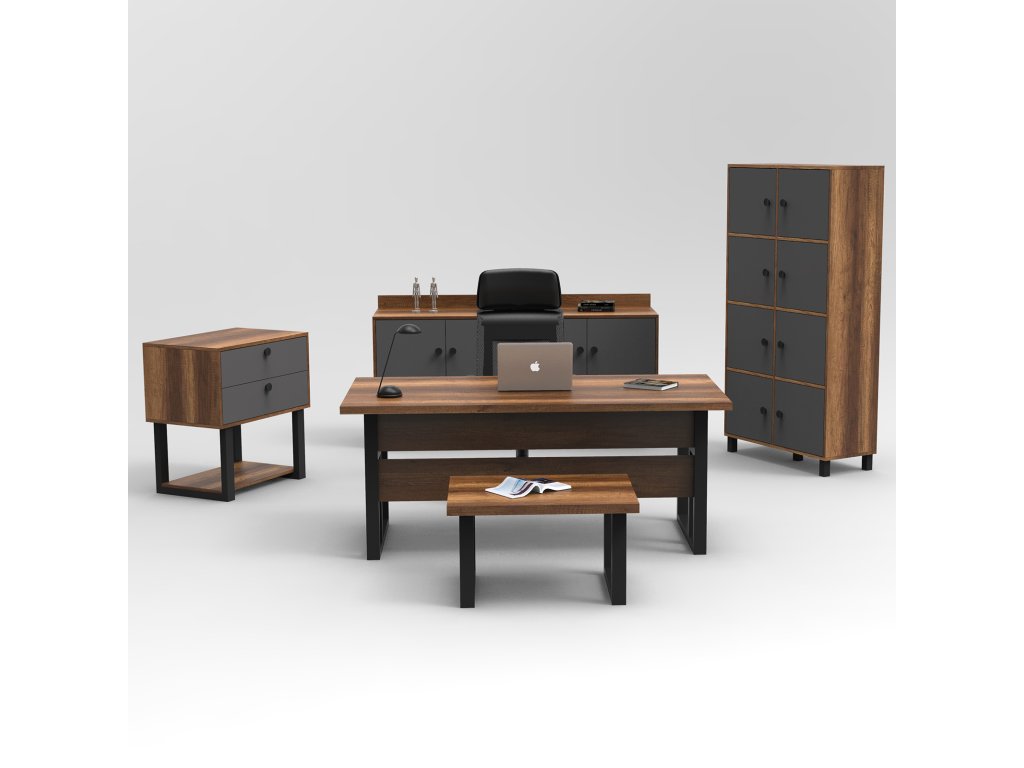 | Sestava obsahuje: | psací stůl 180x90x73cm, konferenční stolek 80x60x43cm, malá komoda 80x52x85cm, konzola 180x54x93cm, vysoká komoda 96x40x180cm |