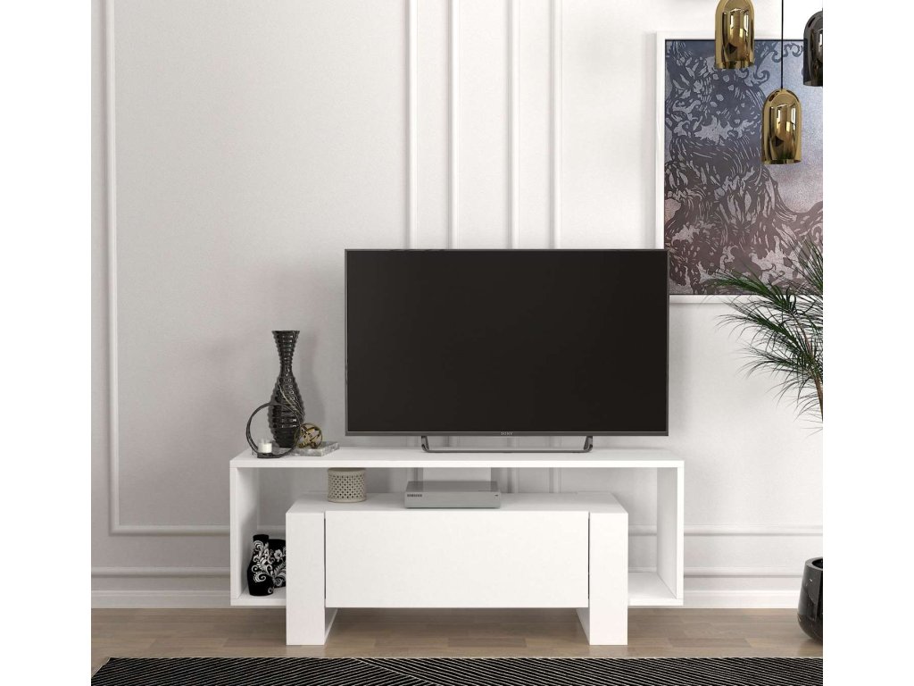- Rozměry: 120 x 48.6 x 33.2 cm, ideální rozměry pro kompaktní umístění televize a dalšího vybavení bez zabírání příliš mnoho prostoru.
