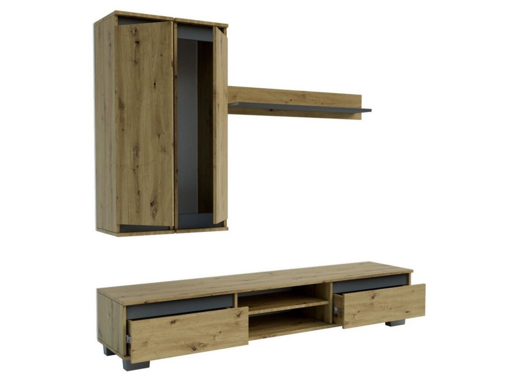MAT obývací stěna, dub artisan/grafit grey