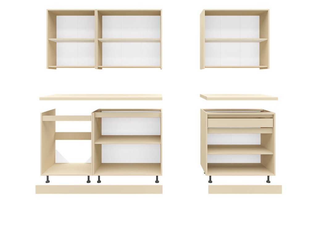| Sestava obsahuje: | 1 ks horní dvoudveřová skříňka 60 cm 2 ks horní dvoudveřová skříňka 80 cm 1 ks dolní dvoudveřová dřezová skříňka 60 cm 1 ks dolní dvoudveřová skříňka 80 cm 1 ks dolní dvoudveřová skříňka se zásuvkou 80 cm |