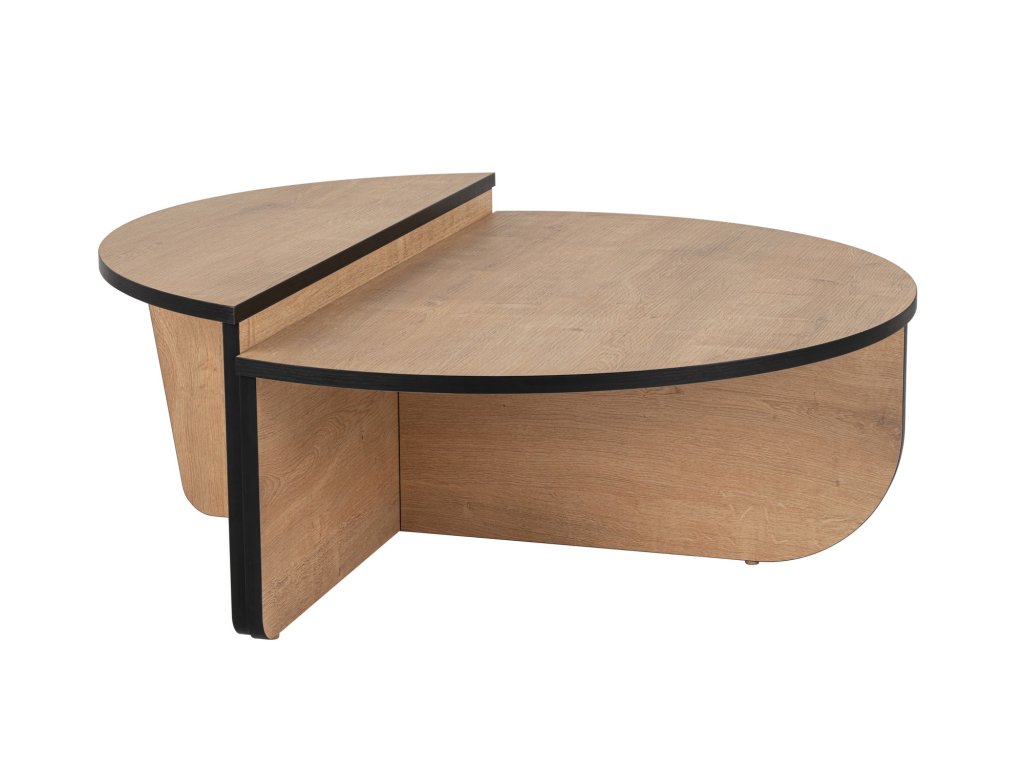 Tento konferenční stolek je vyroben ze 100% dřevotřísky s melaminovým povlakem a je nejen krásný, ale také odolný a má dlouhou životnost. Tloušťka 18 mm zajišťuje stabilitu a robustnost, zatímco černé hrany dodávají designu nádech moderního šmrncu.