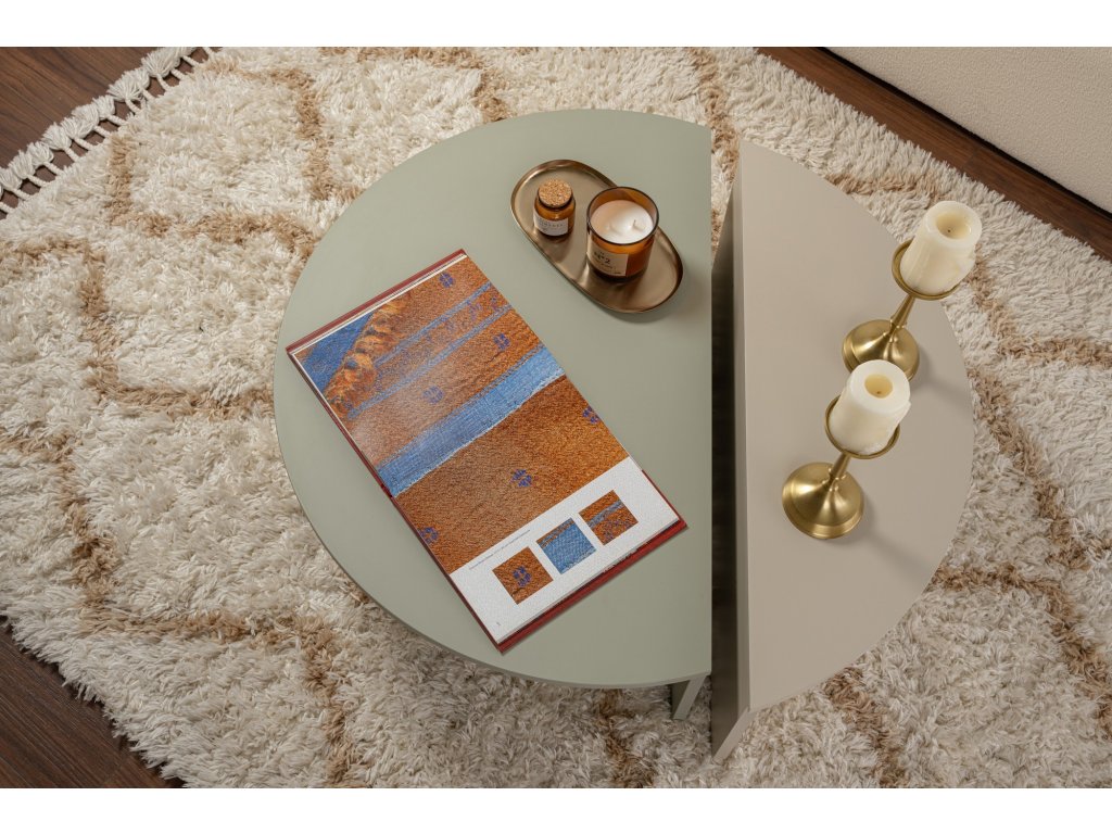 MELANIA dvoudílný konferenční stolek, popelavě zelená / pískovec
