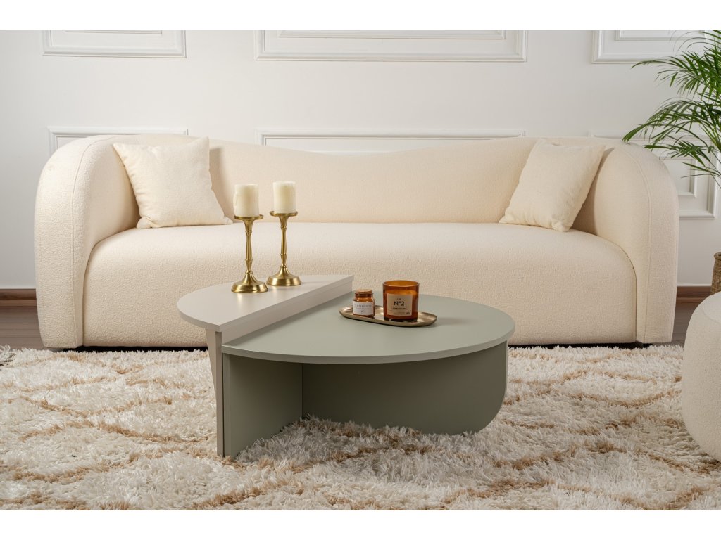 Proměňte svůj obytný prostor s naším úžasným konferenčním stolkem v barvě popelavě zelené a pískovcové. Tento elegantní kousek není jen stolek, ale ztělesnění stylu a sofistikovanosti.