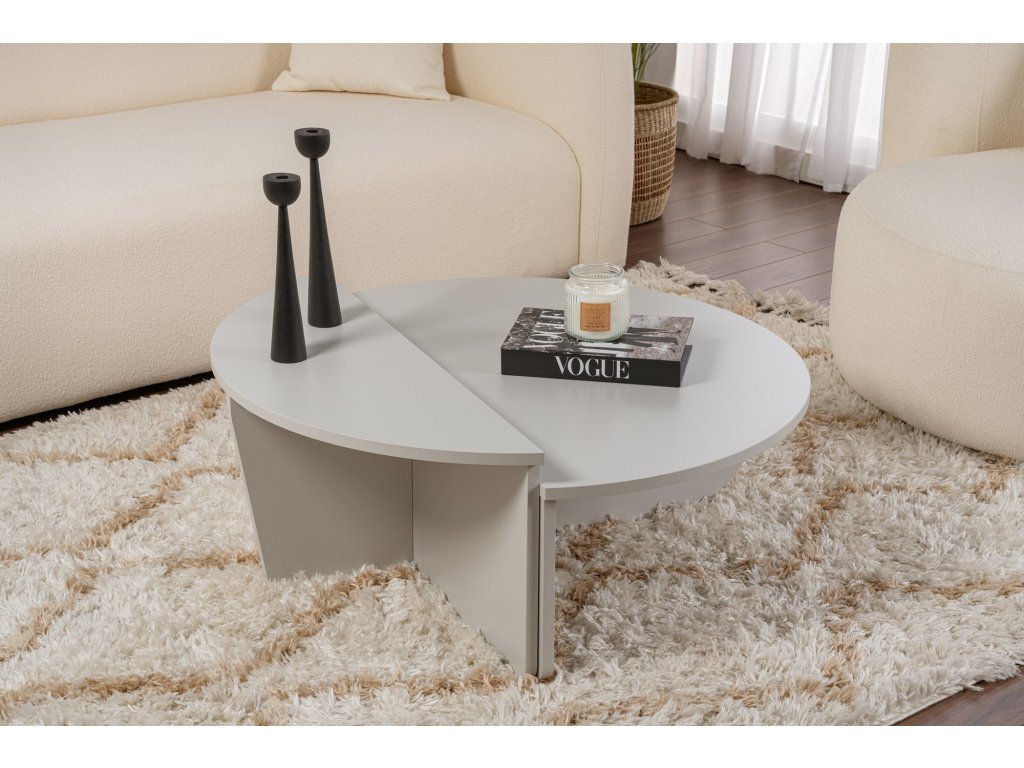 Proměňte svůj obývací pokoj v útulný a příjemný prostor s naším úžasným šedým konferenčním stolkem. Tento konferenční stolek je vyroben ze 100% dřevotřísky s melaminovým povlakem a vyzařuje eleganci a sofistikovanost.