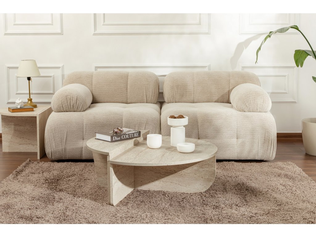 Tento konferenční stolek je vyroben ze 100% dřevotřísky s melaminovým povlakem a je navržen tak, aby vydržel. Tloušťka 18 mm zajišťuje stabilitu a odolnost, zatímco elegantní design dodává každé místnosti nádech sofistikovanosti. Travertinové a mramorové barvy dodávají nábytku luxusní vzhled, který ohromí vaše hosty.