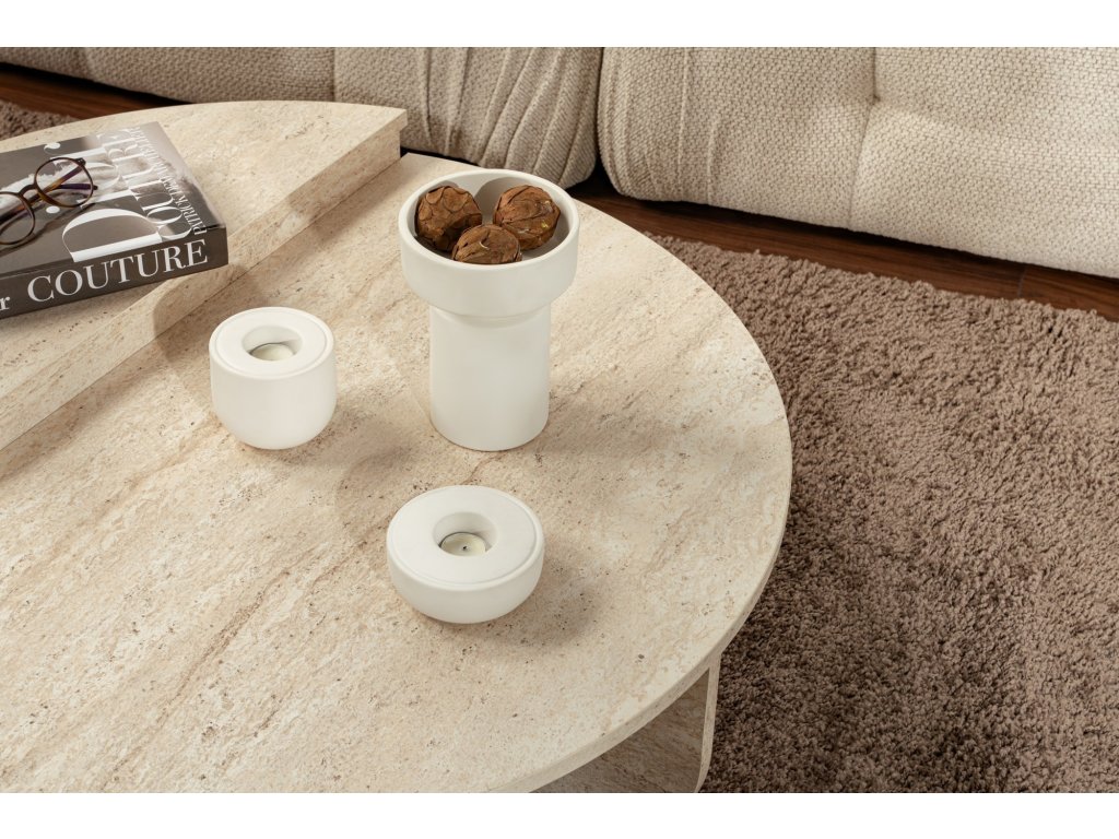 Proměňte svůj obývací pokoj ve stylový a sofistikovaný prostor s naším úžasným konferenčním stolkem. Tento konferenční stolek je vyroben ze 100% dřevotřísky s melaminovým povlakem a je nejen odolný, ale i neuvěřitelně elegantní. Elegantní design a krásné barvy travertinu a mramoru okamžitě pozvednou vzhled každé místnosti.