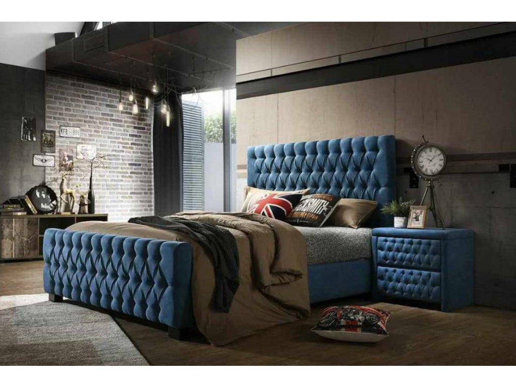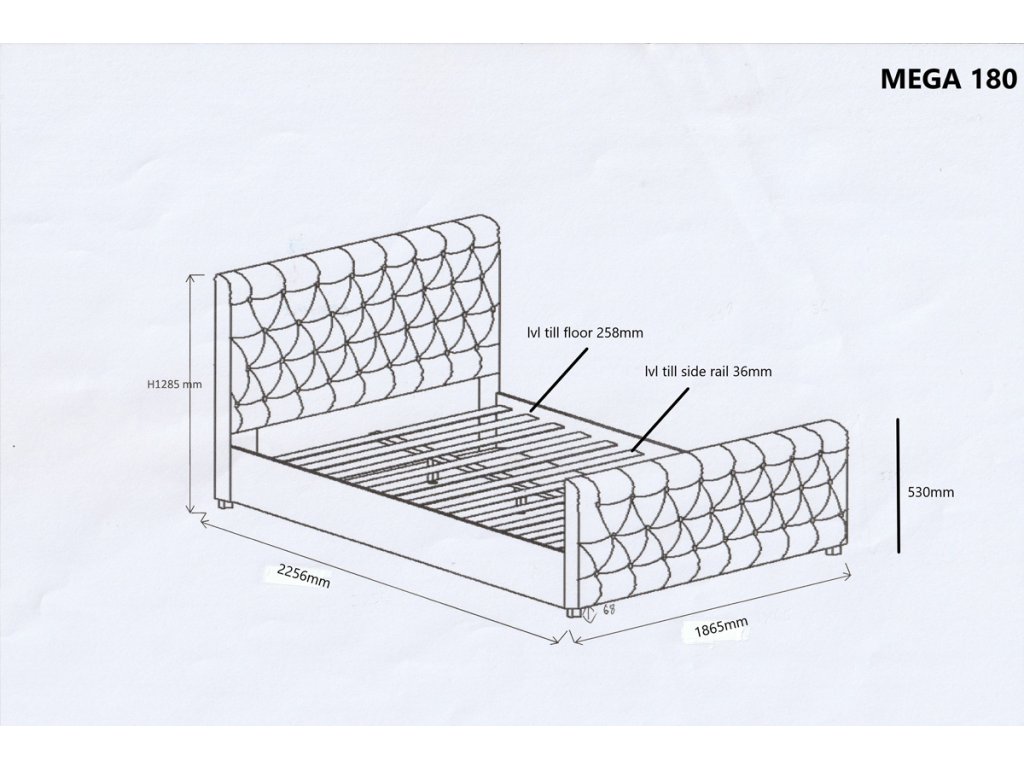 Nohy postele jsou z masivu, jejich výška je 6,8 cm. Postel je celočalouněná kvalitní látkou v modrém barevném odstínu. Nabízí spací plochu 180 x 200 cm. Laťový rošt je v ceně. Matraci je třeba doobjednat. Doporučujeme rozměr 180 x 200, resp. 2 ks 90 x 200 cm.