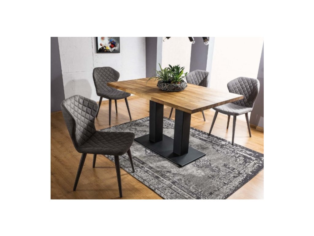 Moderní a designový jídelní stůl se zajímavou konstrukcí. Stůl je vhodný do interiérů zařízených v atraktivním stylu loft. Moderní konstrukce stolu je kovová černá, vrchní deska je vyrobena z přírodního dubového dřeva. Na vzorovém obrázku jsou zobrazeny židle DACIA, které také naleznete v naší nabídce. Na naší stránce naleznete i mnoho jiných stolů, i vhodné židle. Rozměry (výška/šířka/hloubka v cm): 78/120/80. Stůl je dostupný v přírodní dýze. Dodáváme v demontovaném stavu.Doplňkové parametry