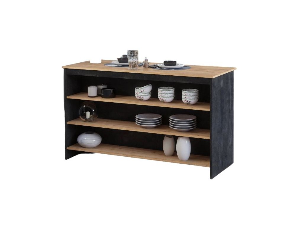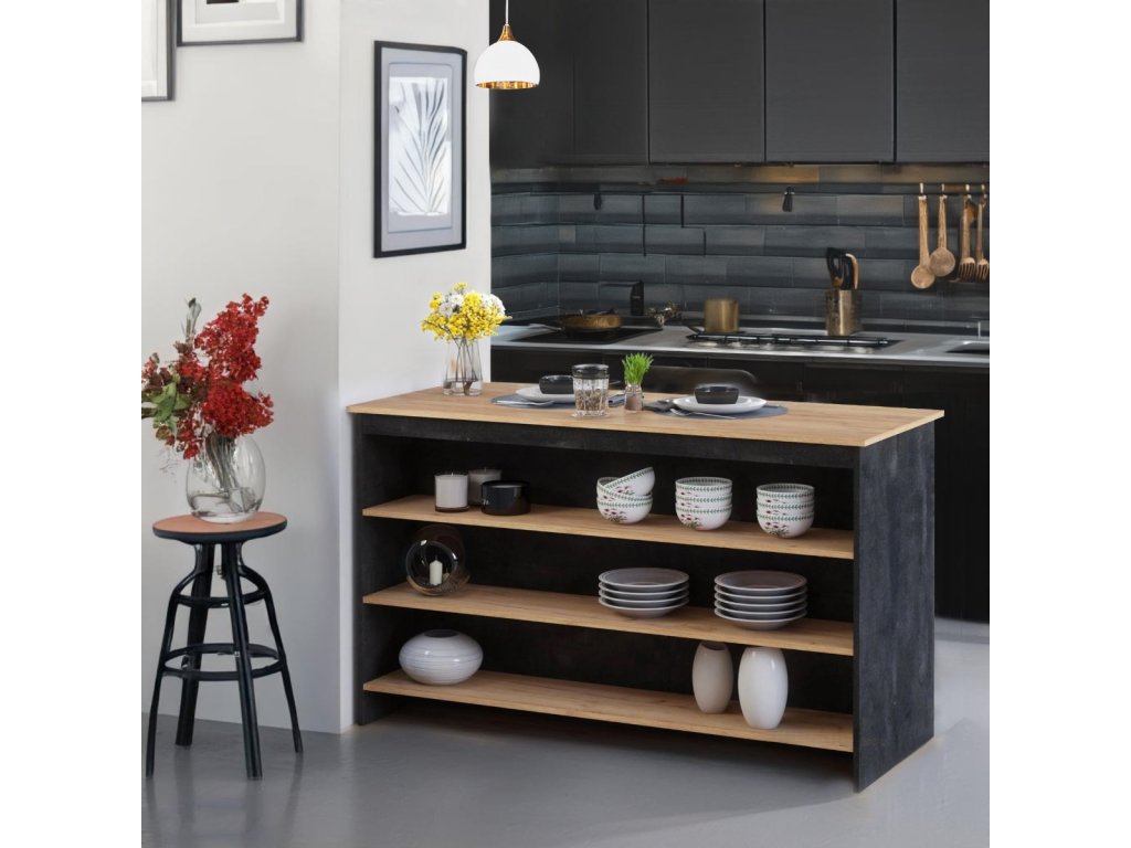 MELLI kuchyňský ostrůvek, černý beton/dub craft