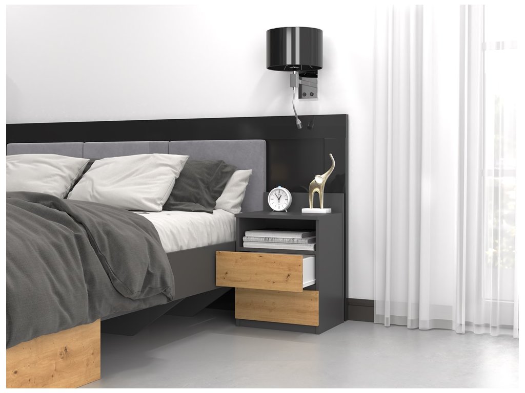 MELWIN M1 noční stolek, antracit/ dub artisan