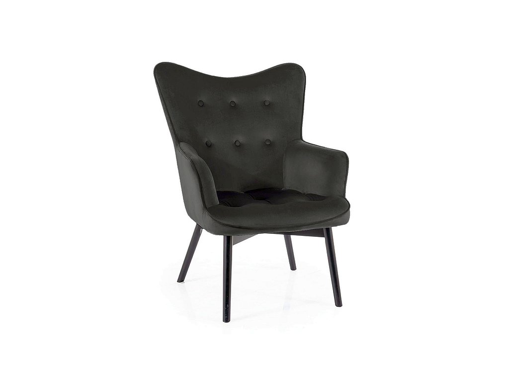 Křeslo je čalouněno kvalitní sametovou látkou Bluvel 19 v černé barvě. Nohy křesla jsou z masivu, mořeného na odstín wenge.
