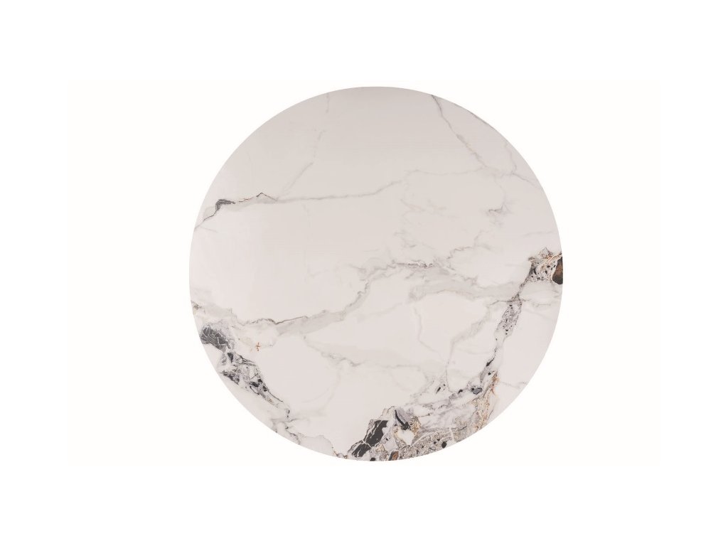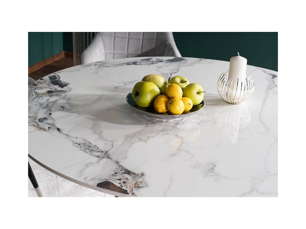 Deska stolu je keramická. Nohy jsou vyrobeny z kovu.