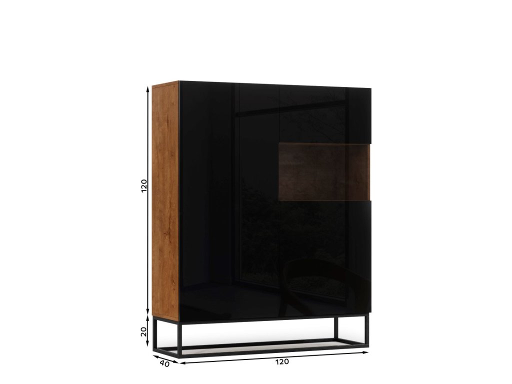 Vitrína z kolekce nábytku METAL je moderní, oku lahodící a funkční kus nábytku. Materiály použité při výrobě vitríny jsou MDF desky, které se vyznačují vysokou odolností. Chybějící úchyty na otevírání dvířek jsou jistě lahůdkou pro milovníky minimalismu. Místo toho má vitrína zabudované panty s funkcí „push to open“. Barevné provedení nábytku je v kombinaci dub artisan s černými čely.