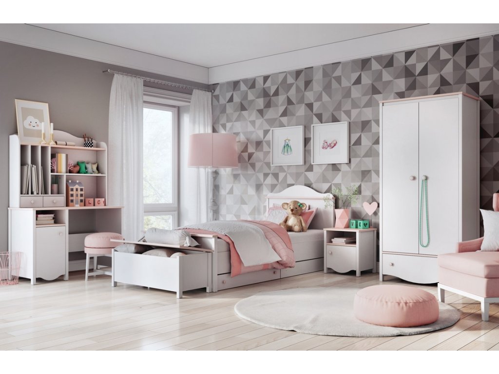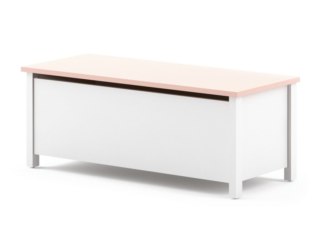 Truhlice MI-10. Truhlice má horní víko. Nábytek je vyrobený z kvalitního lamina ohraničené ABS páskou. Truhlice je v barvě bílé a růžové. V naší nabídce najdete mnoho dalších prvků této sestavy a tento široký výběr Vám zaručí sestavit si útulný dětský pokoj. Dodáváme v demontovaném stavu.