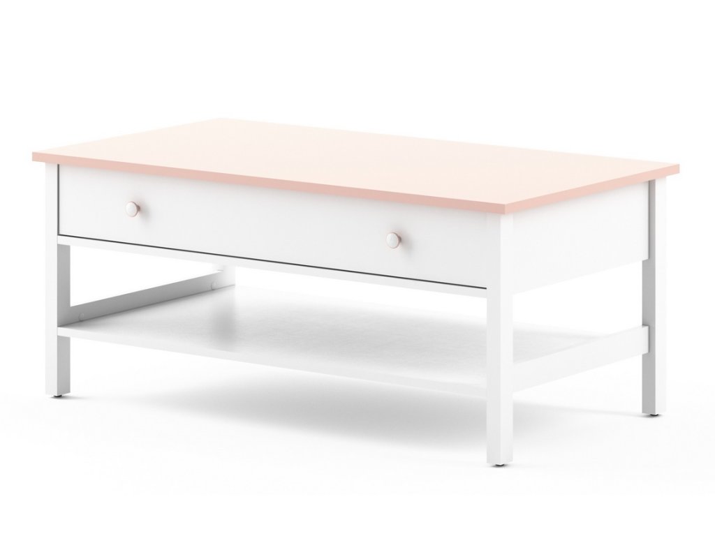 Konferenční stolek se zásuvkou MI-15. Nábytek je vyrobený z kvalitního lamina ohraničené ABS páskou. Stolek je v barvě bílé a růžové. V naší nabídce najdete mnoho dalších prvků stejné sestavy a tento široký výběr Vám zaručí sestavit si útulný dětský pokoj. Dodáváme v demontovaném stavu.