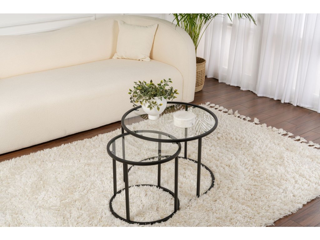 Proměňte svůj obývací pokoj ve stylový a sofistikovaný prostor s naší úžasnou sadou konferenčních stolků. Tato sada je vyrobena ze 100% tvrzeného skla a má robustní kovový rám, takže vyzařuje eleganci a modernost. Elegantní design a kombinace černé a průhledné barvy pozvednou vzhled každé místnosti a budou perfektním doplňkem vašeho domova.
