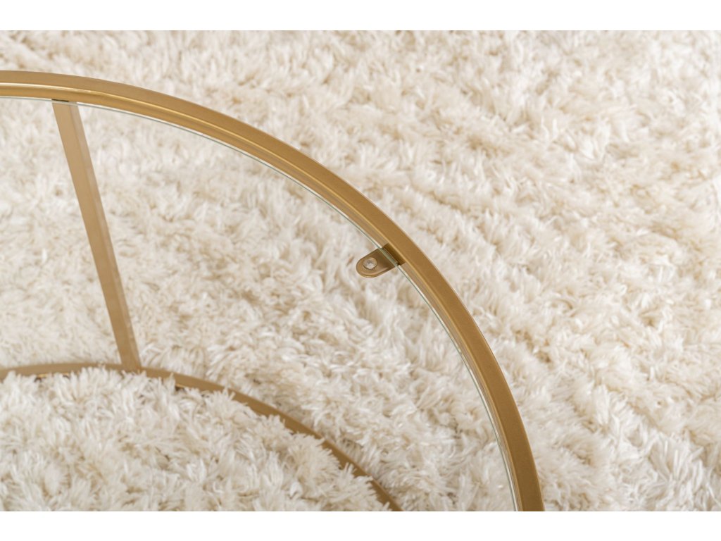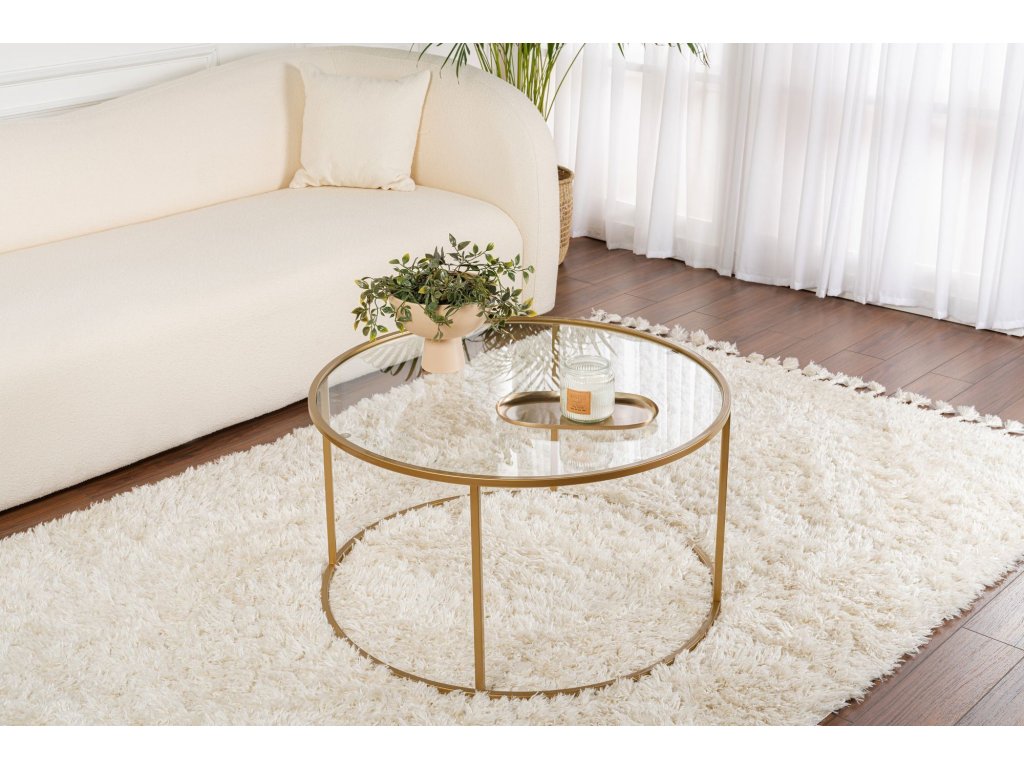 Proměňte svůj obývací pokoj s naším úžasným konferenčním stolkem ve zlaté a průhledné barvě. Tento nádherný kus nábytku není jen kusem nábytku, ale uměleckým dílem, které pozvedne styl vašeho domova. Vrchní deska ze 100% tvrzeného skla dodává nádech elegance, zatímco kovový rám zajišťuje odolnost a stabilitu.