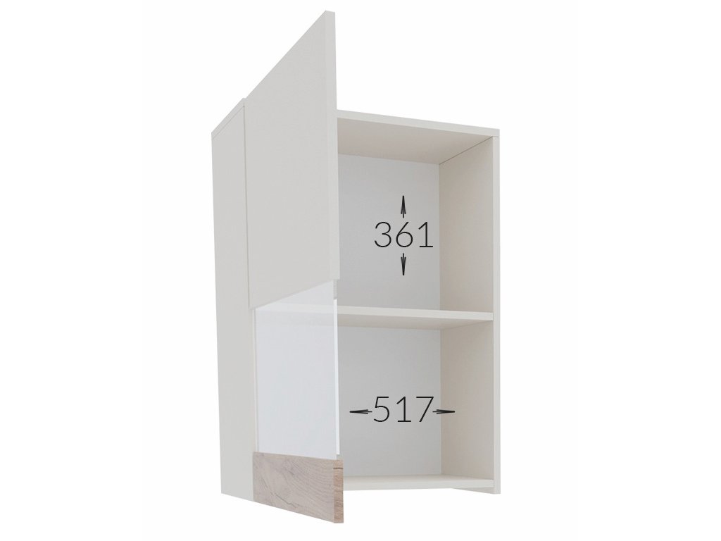 Horní část se skládá z efektní vitrínové skříňky a závěsné poličky ve dvoubarevném provedení. Tyto poskytnou prostor pro umístění dekoračních předmětů či fotografii. Součástí vitríny není osvětlení. Rozměry vitríny (š/v/h): 55 x 78,5 x 31 cm. Rozměry poličky (š/v/h): 120 x 20 x 20 cm.