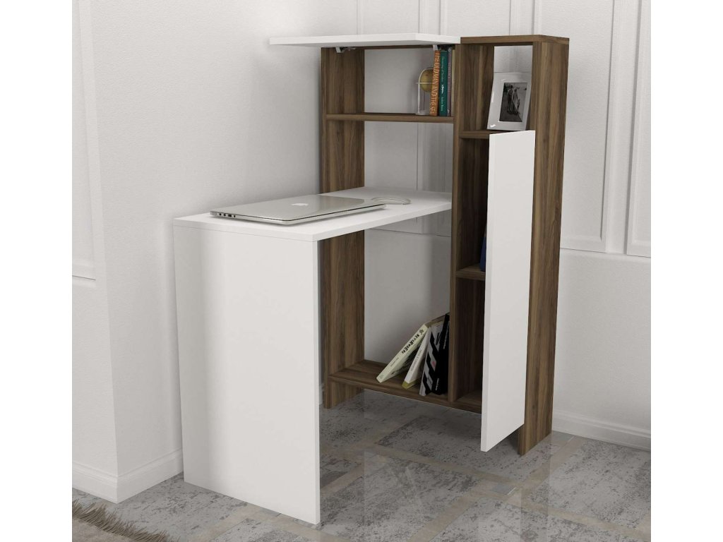 MILA úzký psací stůl, bílá/ořech