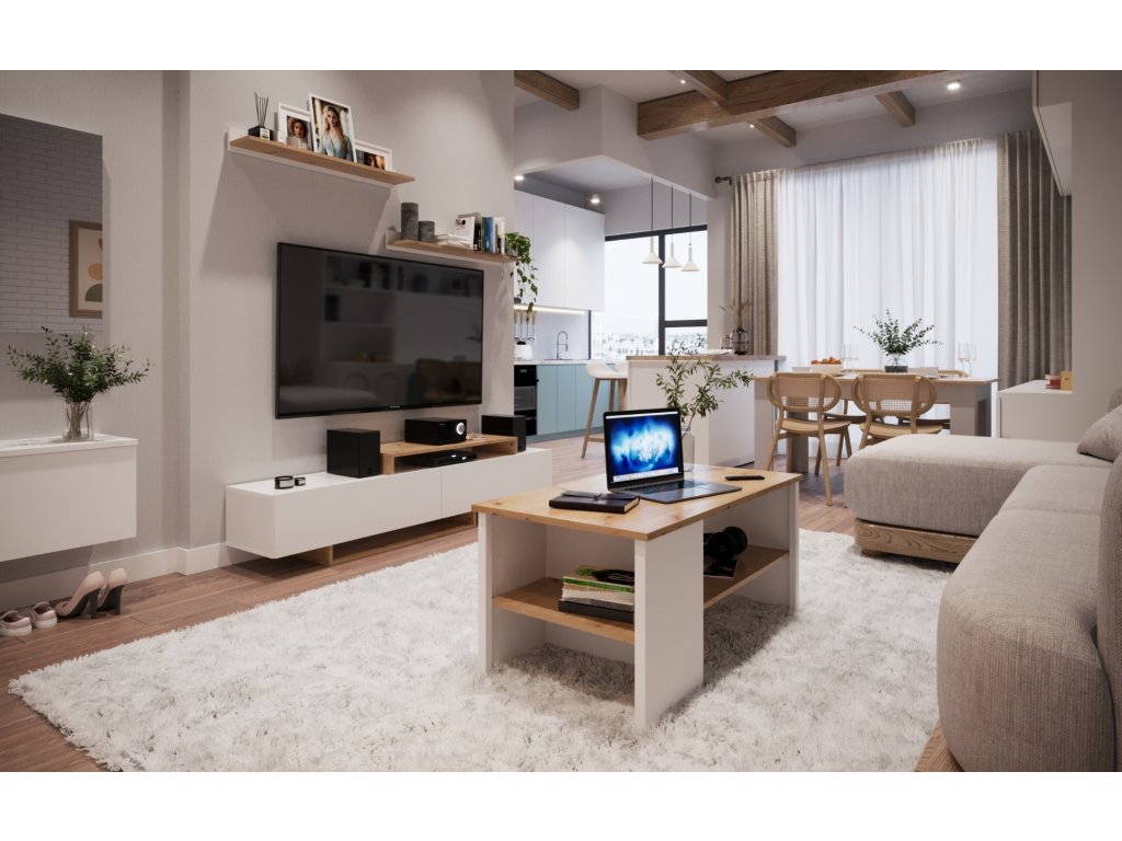 Proměňte svůj obytný prostor s mini obývací stěnou MILANO, která kombinuje styl a praktičnost. Její minimalistický vzhled a otevřené police ji dělají ideální pro moderní domácnosti, poskytujíc dostatek úložného prostoru při zachování čistého a uklizeného vzhledu. Barevné provedení dodává nádech elegance, který se hladce přizpůsobí různým interiérovým designům.