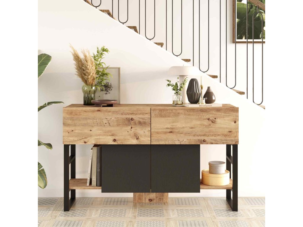 MILI 25 konzolový stolek, barva borovice/černé nožky