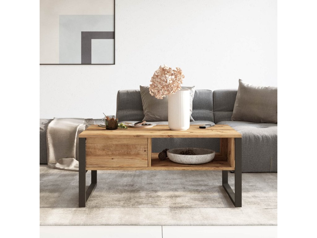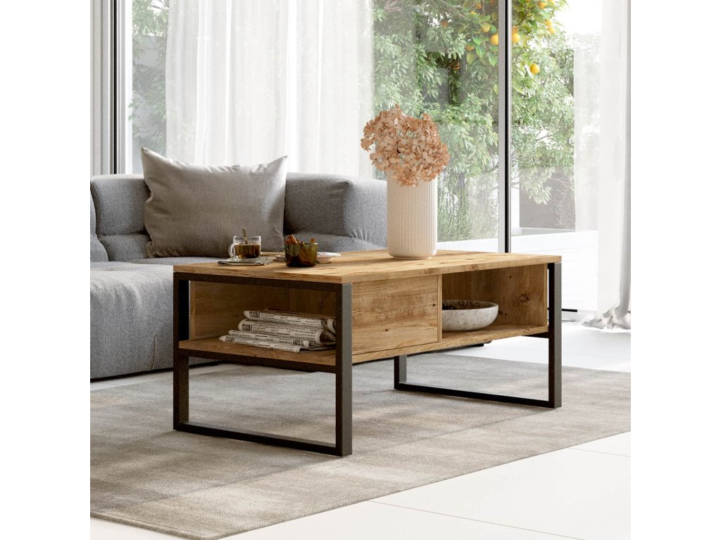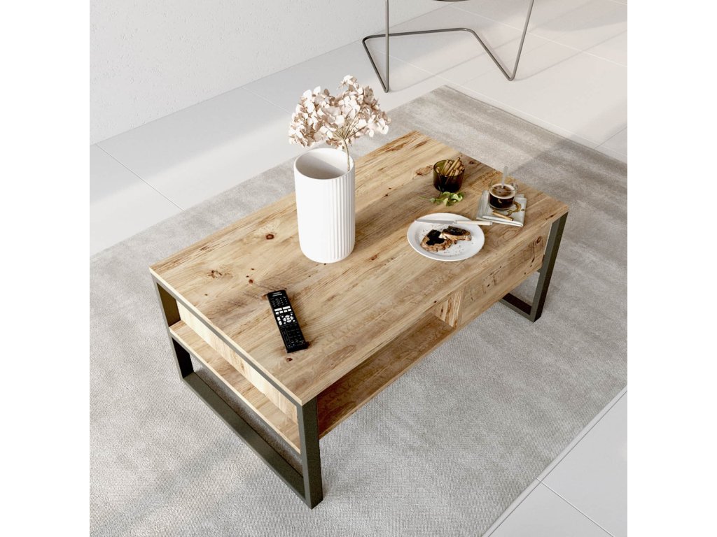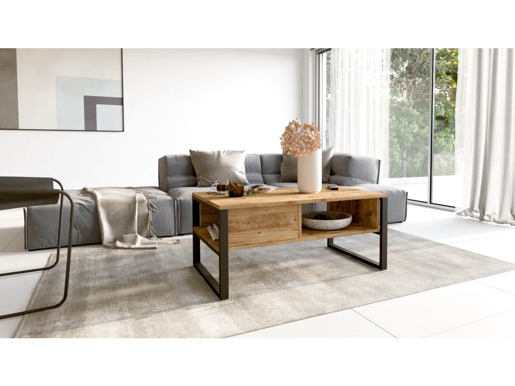 MILI 34 stylový konferenční stolek, barva borovice/černý kov