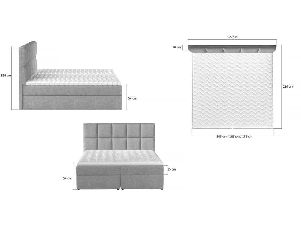 Výška matrace 15 cm, výška topperu 4 cm. Matrace a topper je v ceně postele. V nabídce i další barvy čalounění.