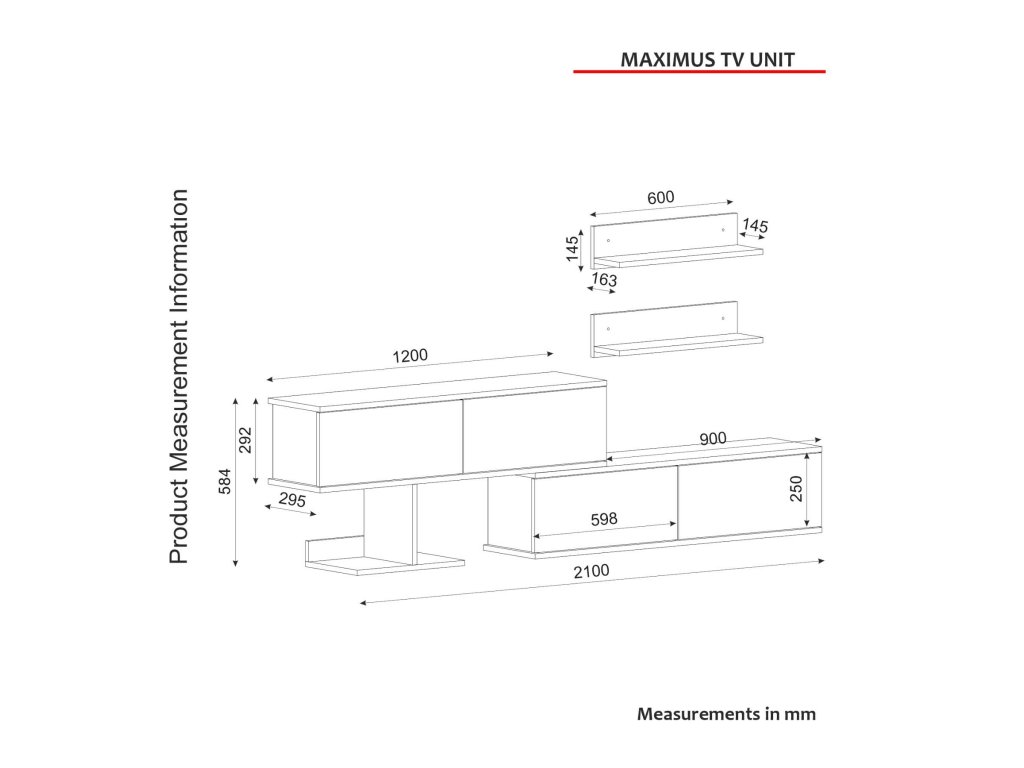 | Sestava obsahuje: | TV stolek š185,5-210Xh29,5Xv59, 2x nástěnná police š60Xh14,5Xv14,5 |