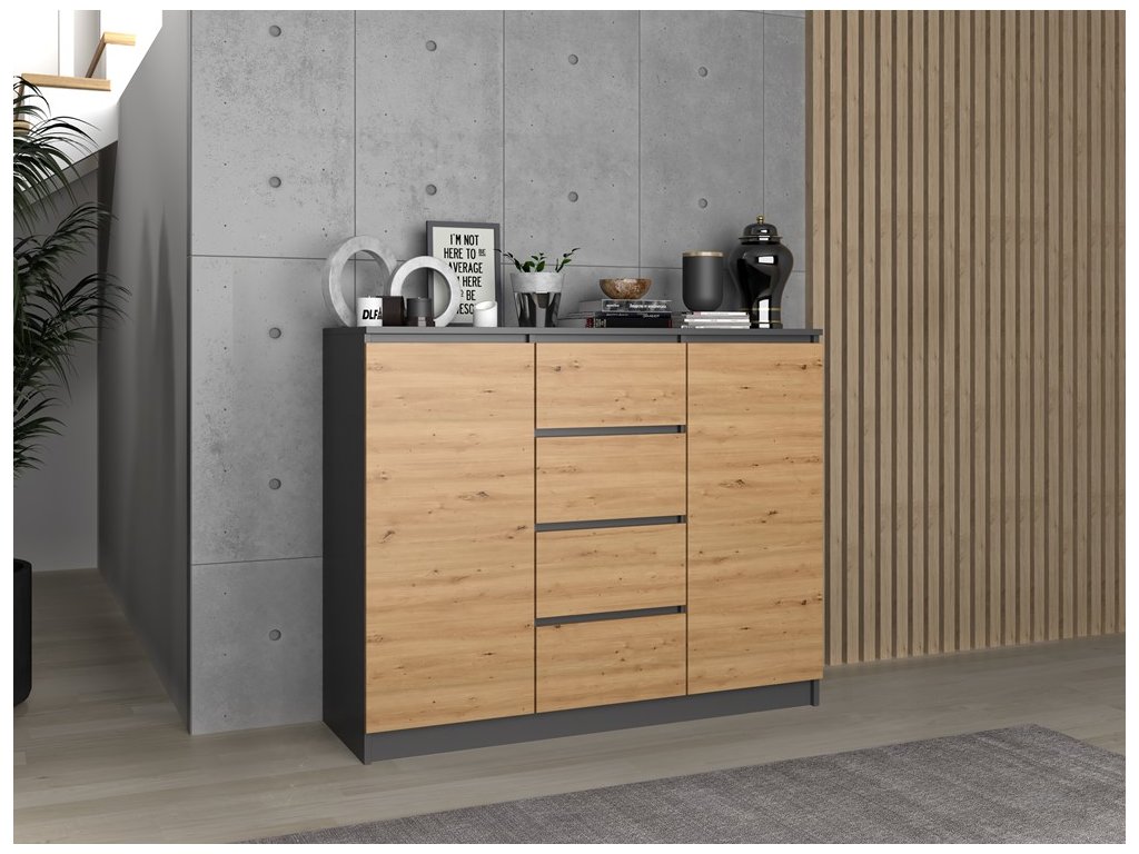 Moderní komoda 2D4S, antracit/ dub artisan