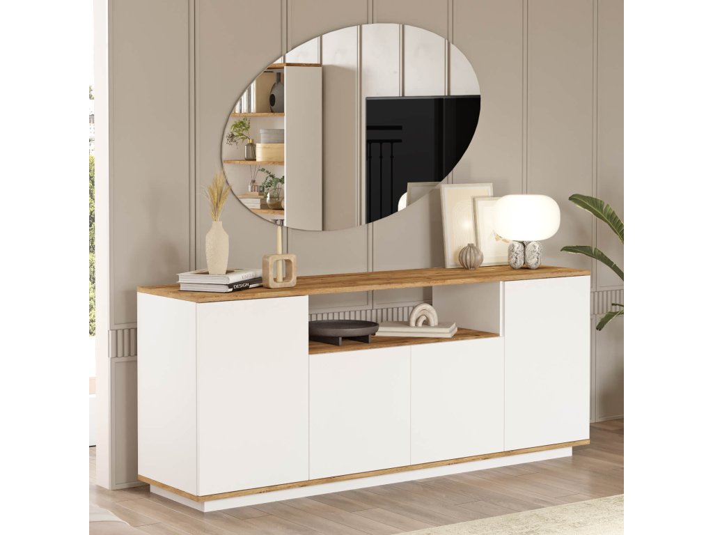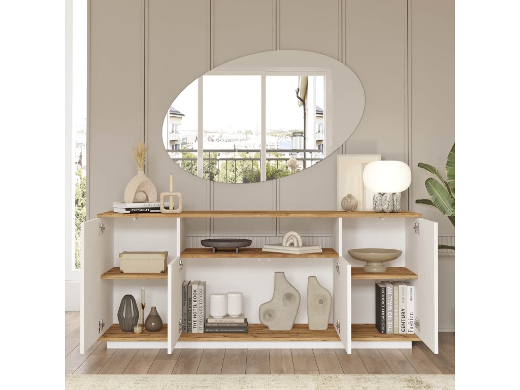 Moderní komoda 4-dveřová FREY 15, barva bílá/borovice