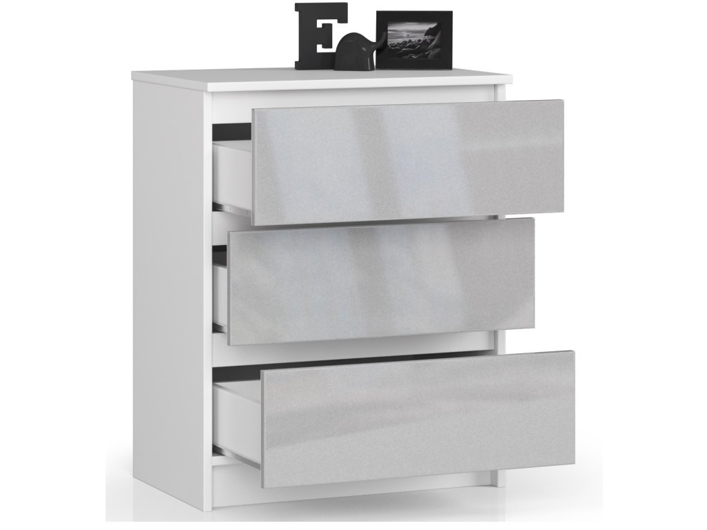 Hledáte komodu, která skvěle doplní váš interiér a zároveň splní všechny vaše požadavky na funkčnost? Představujeme vám SILVIA60 - stylovou skříňku, která spojuje elegantní bílou barvu s oslnivým metalickým leskem. Ideální doplněk pro vaši ložnici či obývací pokoj.