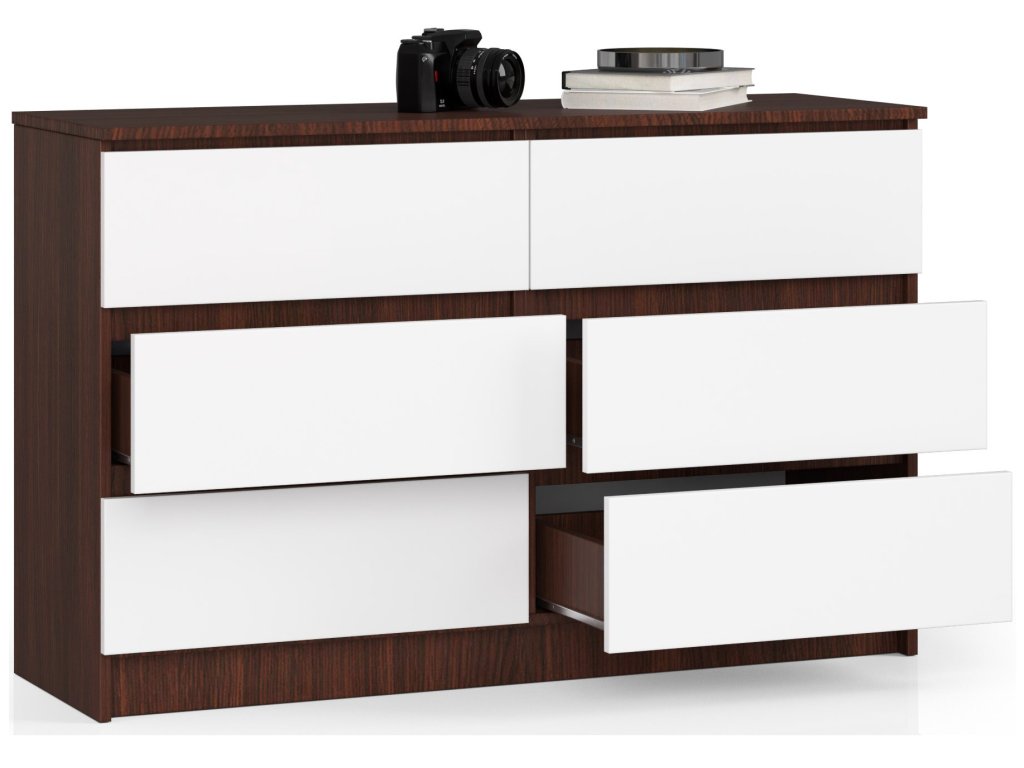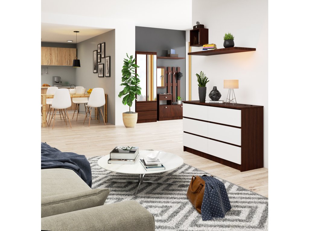 Moderní design se setkává s praktičností v komodě SOPHIE120. Tento unikátní kousek nábytku kombinuje tmavou eleganci wenge s čistotou bílé, což vytváří dokonalý kontrast, který oživí jakýkoliv interiér.