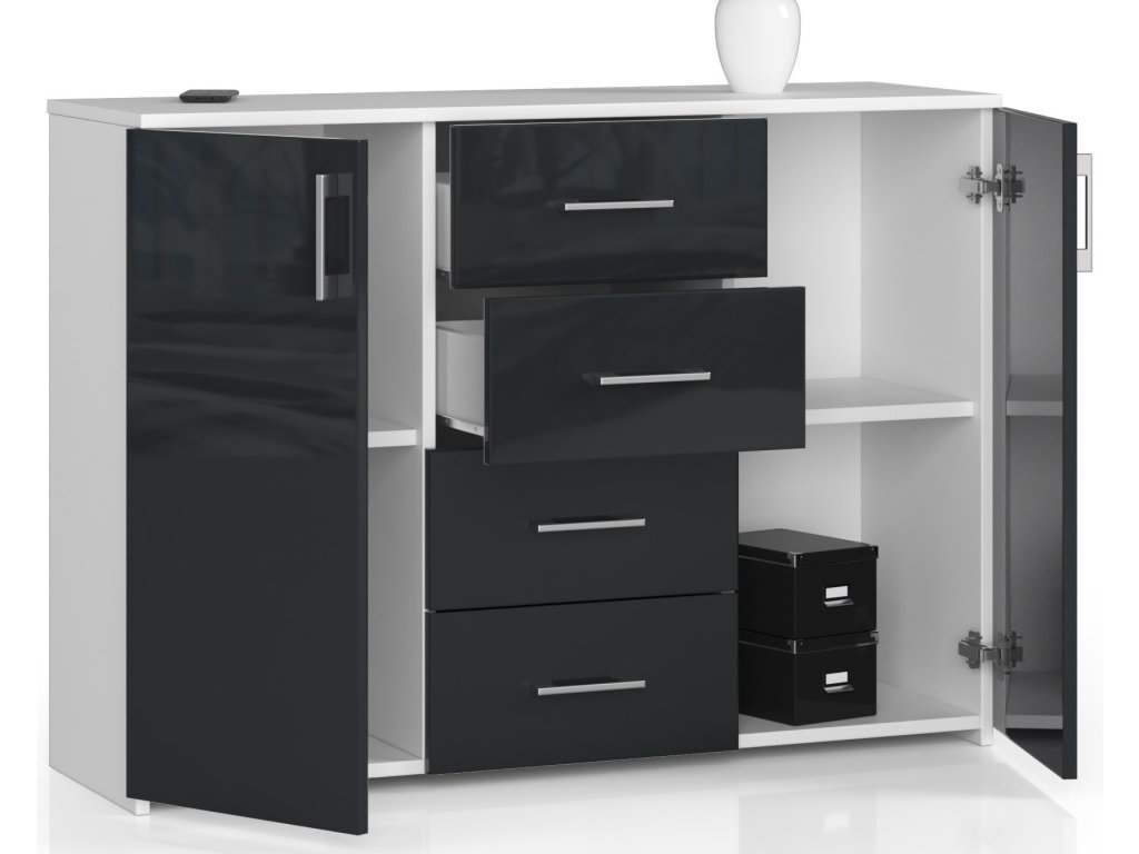 Moderní komoda TRAVI110, bílá / antracit lesk