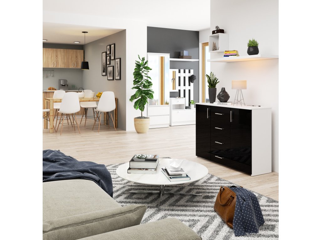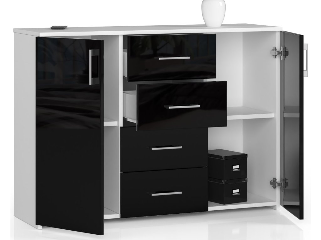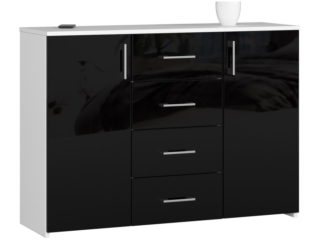 Komoda TRAVI110: Moderní elegance v bílé a černém lesku