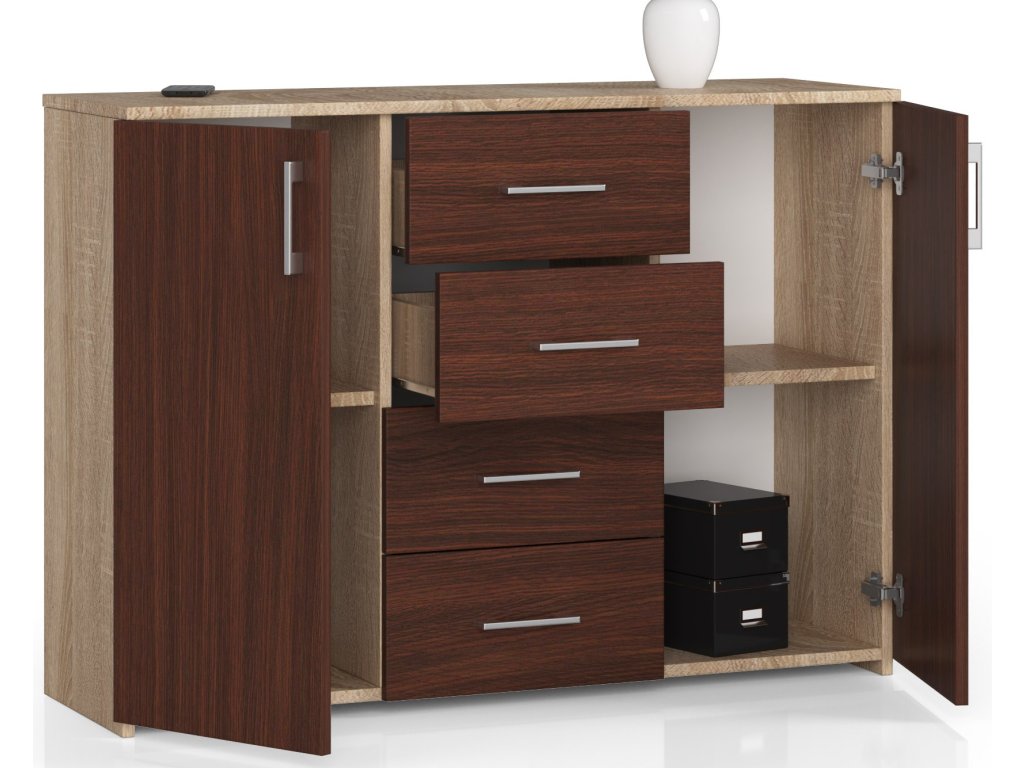 Moderní komoda TRAVI110, dub Sonoma / wenge