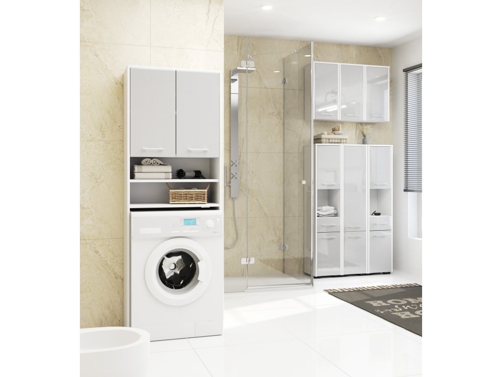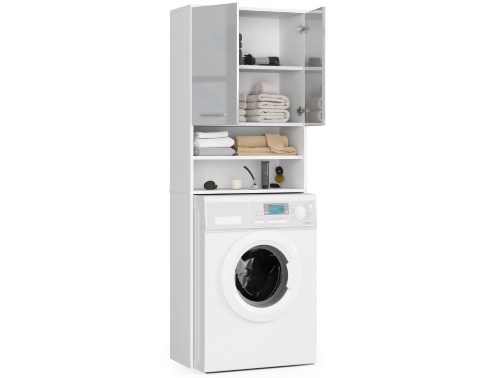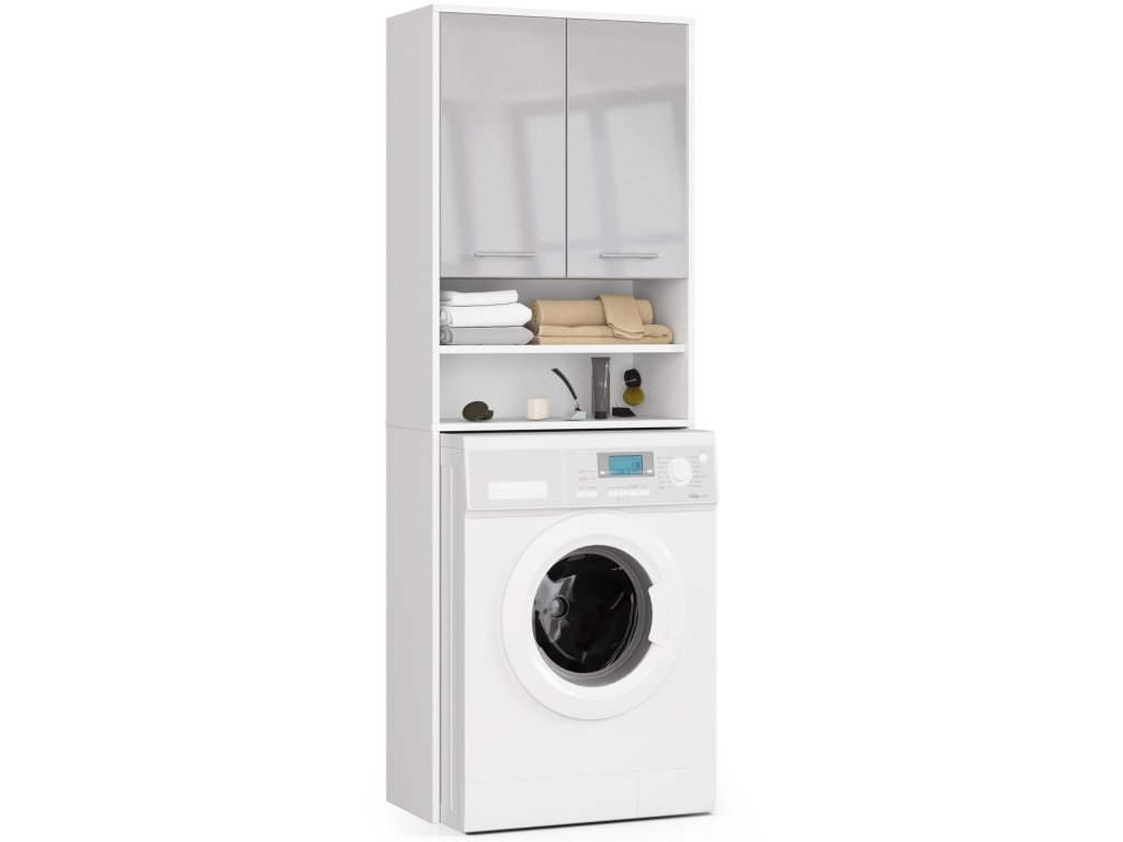 Moderní skříňka nad pračku AVERY, bílá / metalický lesk