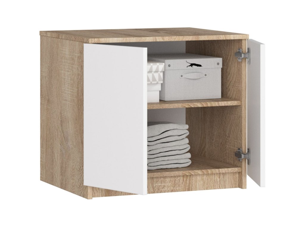 - Barva: Elegantní kombinace dub Sonoma a bílé - dokonale zapadne do každého interiéru