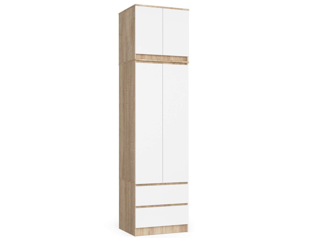 ALENKA60 je nádstavba, která dodá vaší ložnici skvělý vzhled a zároveň poskytne potřebný úložný prostor. S dokonalým spojením dubu Sonoma a bílé barvy se stane skvostem v jakékoli ložnici.